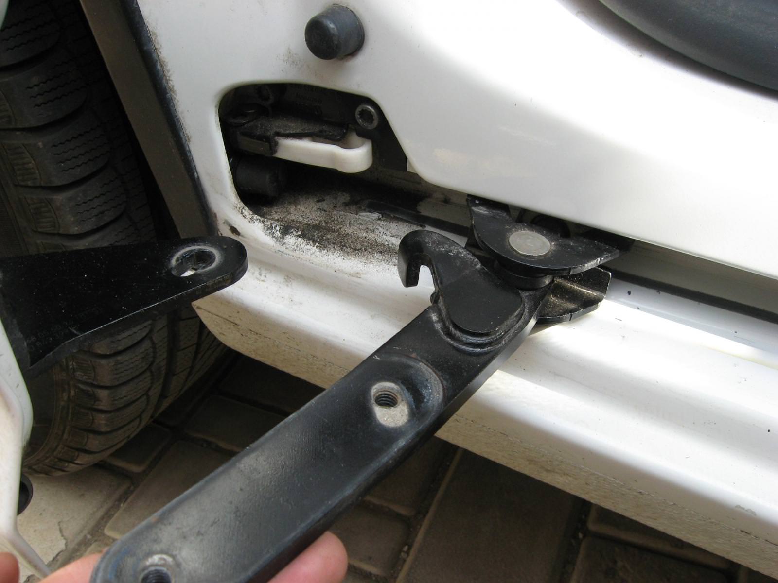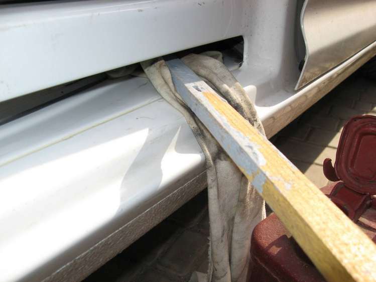 2. Извлеките ролик. Между дверью и кузовом вставьте пустую пластиковую бутылку или ветошь.